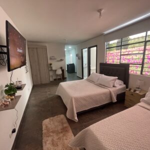 Descripción: edificio de dos pisos, en el primer piso local y en el segundo cuatro aparta estudios, totalmente amoblados, sin parqueadero, ni cuarto útil. La propiedad tiene 3 matrículas, una del local y dos de los apartamentos.